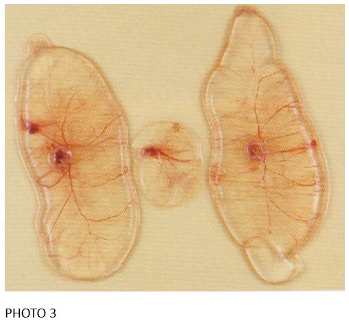 Ne restreignez jamais l’alimentation d’une truie en surpoids en début de gestation. Cela se ferait toujours au détriment du développement du placenta et des fœtus (photo 3 : 4 semaines de gestation et photo 4).